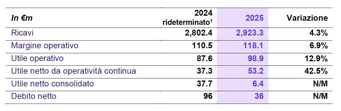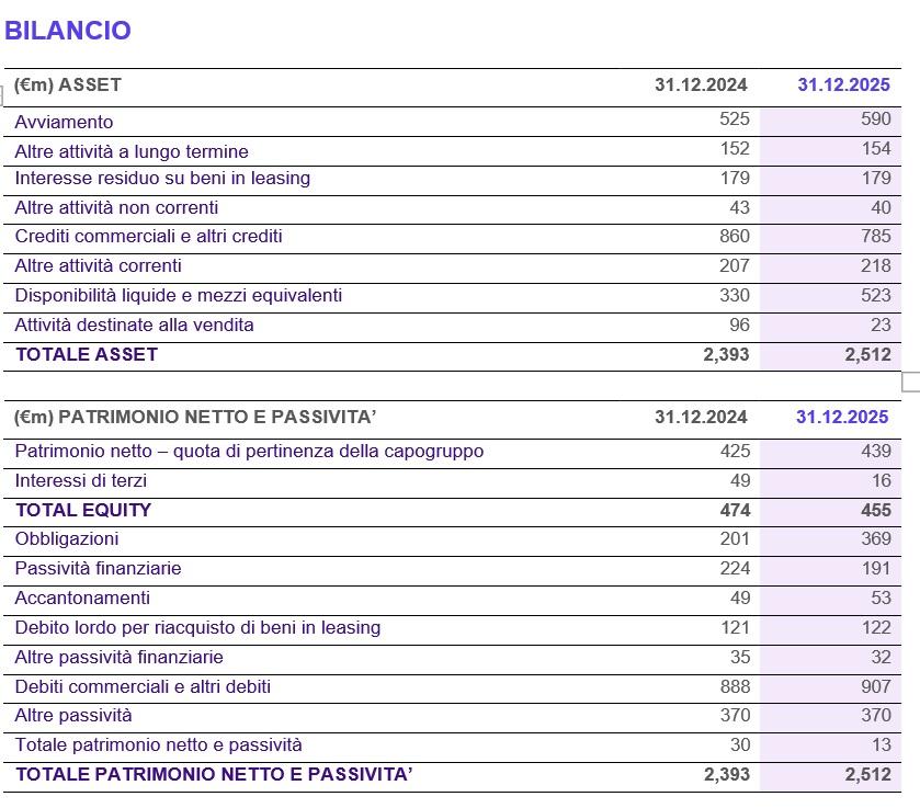 A dicembre 2025, l’indebitamento finanziario netto del gruppo era pari a 36 milioni di euro, rispetto ai 96 milioni di dicembre 2024. Il free cash flow degli ultimi 12 mesi ha raggiunto 142 milioni di euro.