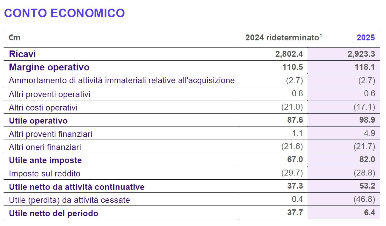 - Utile da attività operative in continuità pari a 53,2 milioni di euro, in forte crescita (+42,5%¹ rispetto al 2024) grazie al miglioramento della performance operativa.
